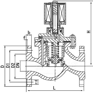 本閥是有副閥和主閥兩大部件構成的先導式二次開闊的電磁閥。是靠副閥的啟閉來控制主閥的通斷。根據斷電時所處開關狀態的不同,可分為常閉電磁閥和常開電磁閥。常閉電磁閥,在段點常位時,副閥口封閉,主閥呈斷路,當電訊號進入導閥線圈時,活動鐵芯受電磁力作用吸上打開副閥口,主閥閥杯內壓力導速消失,介質壓力將主閥閥杯托上,開啟主閥,工作介質便可流通。但當電訊號消失時,活動鐵芯復位,封閉住副閥口,工作介質自平衡孔進入閥內,當壓力趨于平衡時,靠主閥彈簧,閥杯自重及介質壓力使閥杯下移,嚴密封住主閥口,閥有呈封閉狀態。常開電磁閥,在斷電常位時,有彈簧作用,副閥口打開,主閥流通。當電訊號進入副閥線圈時,活動鐵芯受電磁作應吸下,當壓力趨于平衡時,靠主閥彈簧、閥杯自重及介質壓力使閥杯下移,嚴密封住閥口,閥門呈關閉狀態。當主閥斷電時,電磁力消失,副閥找開,主閥杯內壓力迅速消失,介質壓力將主閥閥杯托上,開啟主閥口,介質流通,閥呈開啟狀態。