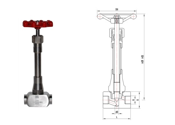 公稱通徑 DN(mm) | DJ11W-40P 低溫針型閥 | 重量 (kg) | ||||||