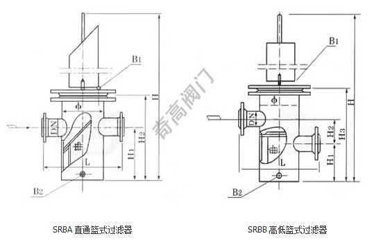 SRBB高低籃式過濾器主要外形尺寸