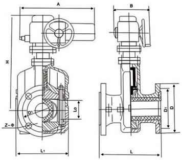 公稱 通徑 (DN) | 公稱 壓力 (MPa) | 工作 壓力 (MPa) | L | L1 | L0 | D | D1 | Z-Φ | H | 電動裝置 |