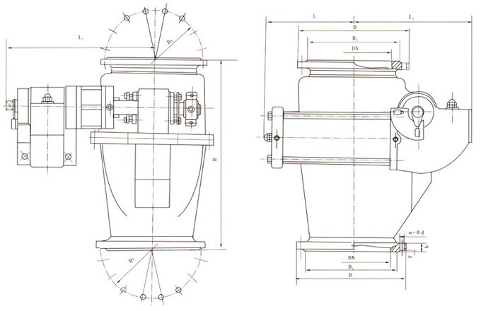 公稱(chēng)壓力PN | 公稱(chēng)通徑DN | D | D1 | D2 | b | f | n-φd | L | L1 | L2 | H | 管接頭 | 氣缸型號(hào) |